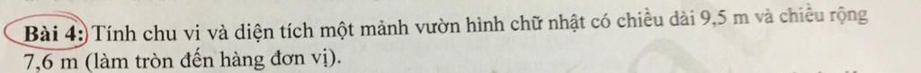 Vậy chu vi mảnh vườn là `34m`, diện tích mảnh vườn là `72m^2`.