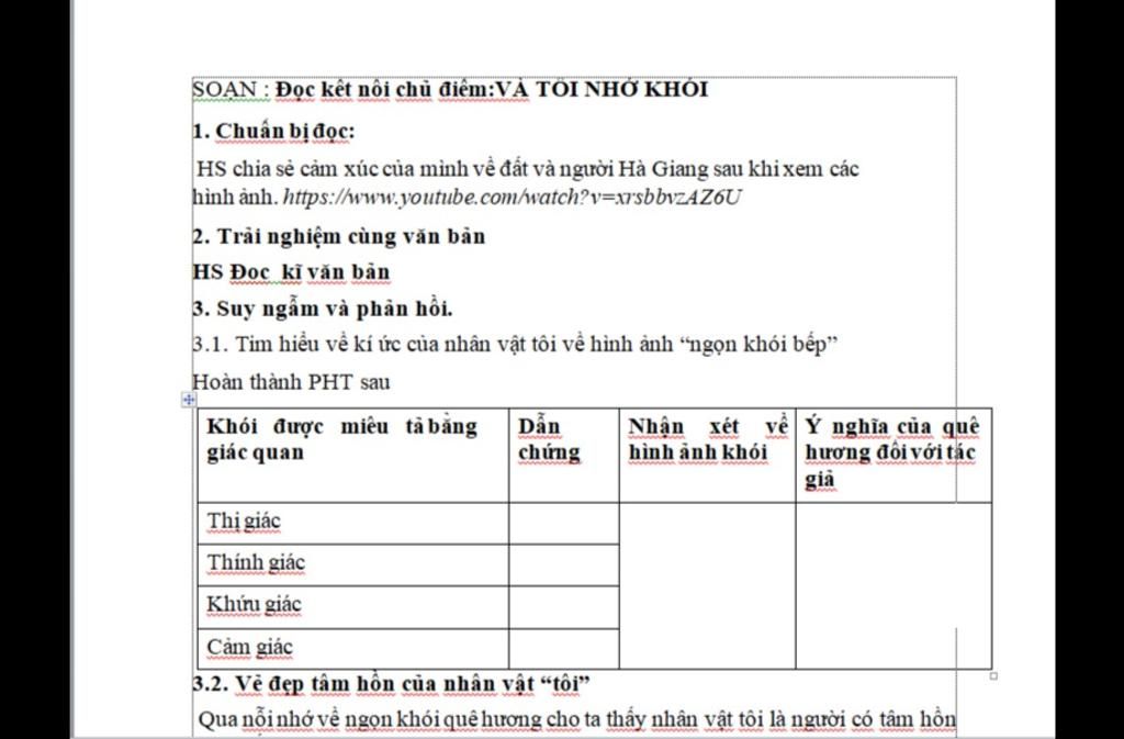SOẠN : Đọc kết nối chủ điểm:VÀ TÔI NHỚ KHỎI
