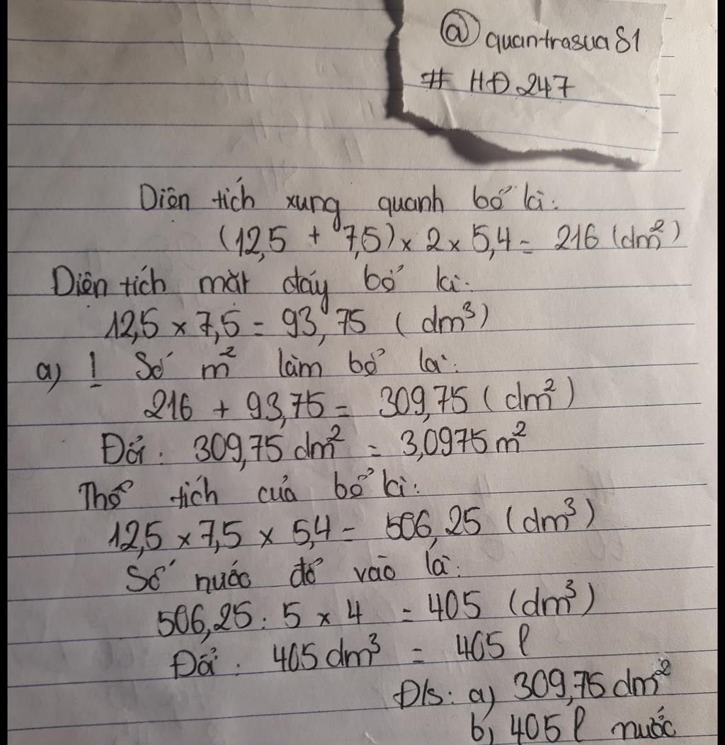 `506,25 xx 4/5=405` `(dm^3)=405` `(` lít `)`