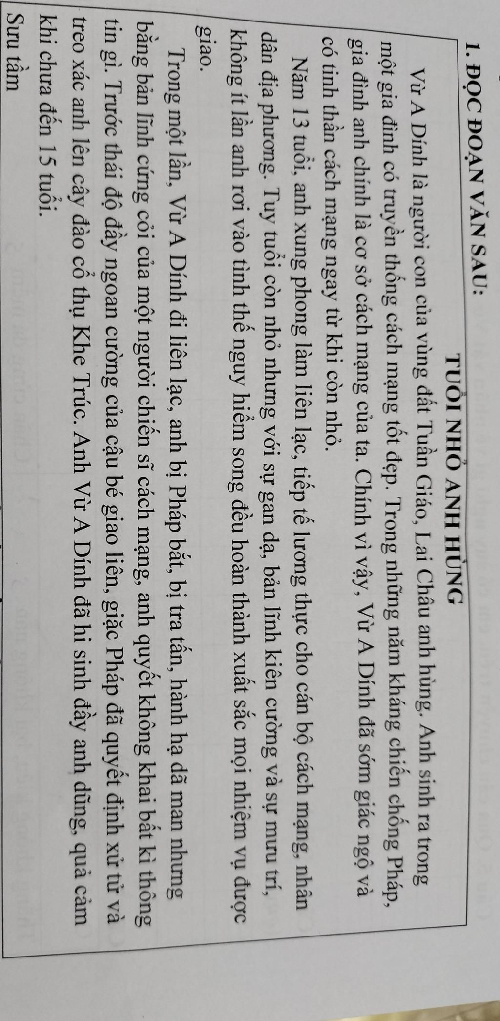 Câu 5: quá câu chuyện trên, e có suy nghĩ j về nhân vật Vừ A Dình?