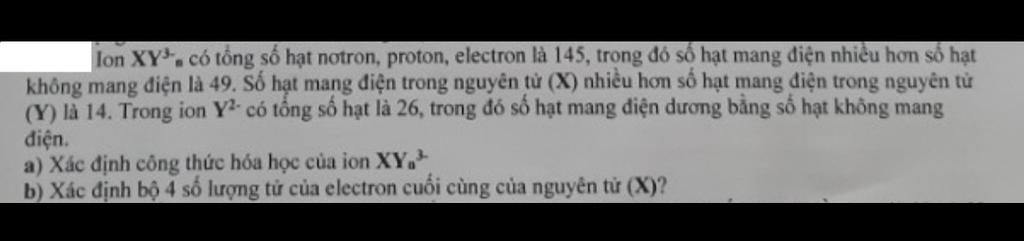 Tổng số hạt trong $XY_n^{3-}$ là $145$ nên ta có: