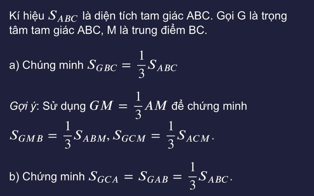 Kí hiệu SABC là diện tích tam giác ABC. Gọi G là trọng
