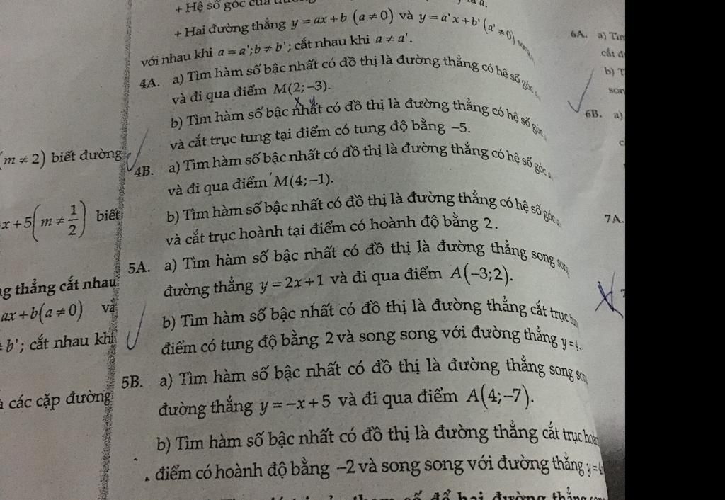 4A. a) Tìm hàm số bậc nhất có đồ thị là đường thẳng có hệ số g