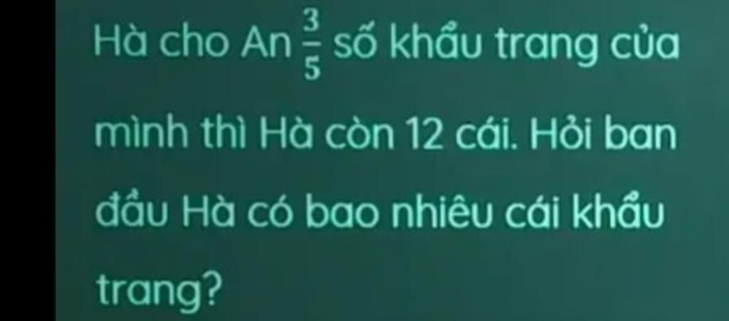 `1-3/5=2/5` ( tổng số khẩu trang trong hộp)