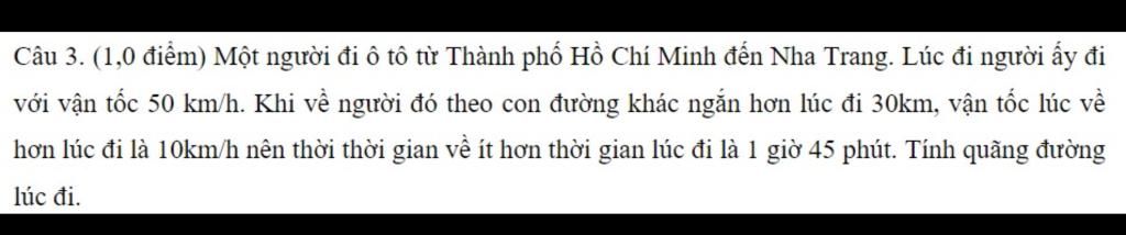 Câu 3. (1,0 điểm) Một người đi ô tô từ Thành phố Hồ Chí Minh đến Nha Trang. Lúc đi người ấy đi