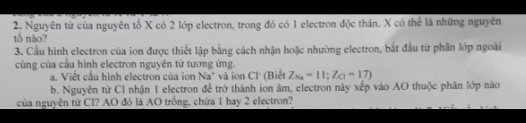 X có 2 lớp e, có 1 electron độc thân vậy X có thể là các nguyên tố: