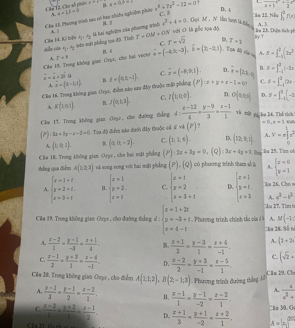 Câu 13. Phương trình sau có bao nhiêu nghiệm phức z4 + 722 − 12 = 0?