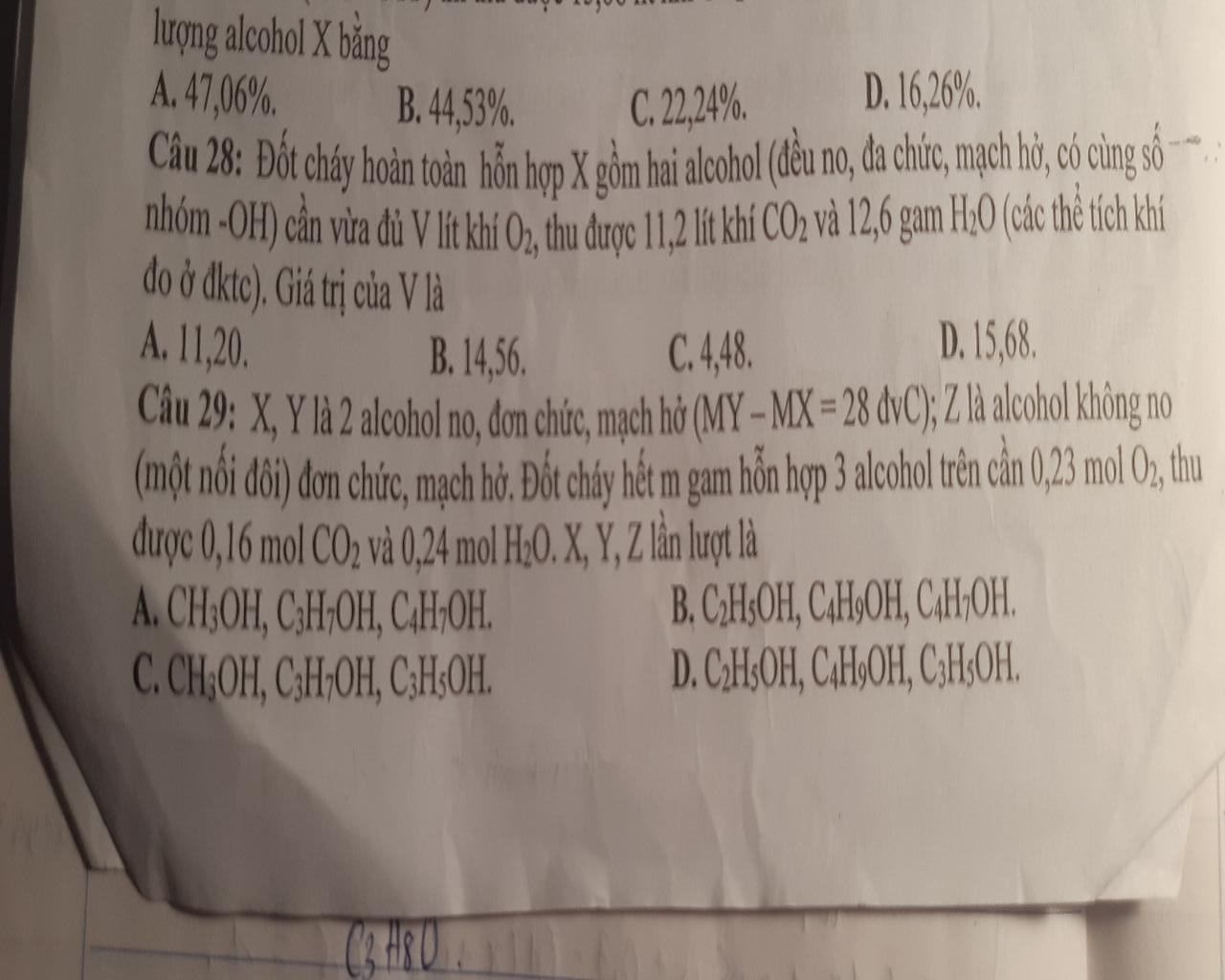Câu 28: Đốt cháy hoàn toàn hỗn hợp X gồm hai alcohol (đều no, đa chức, mạch hở, có cùng