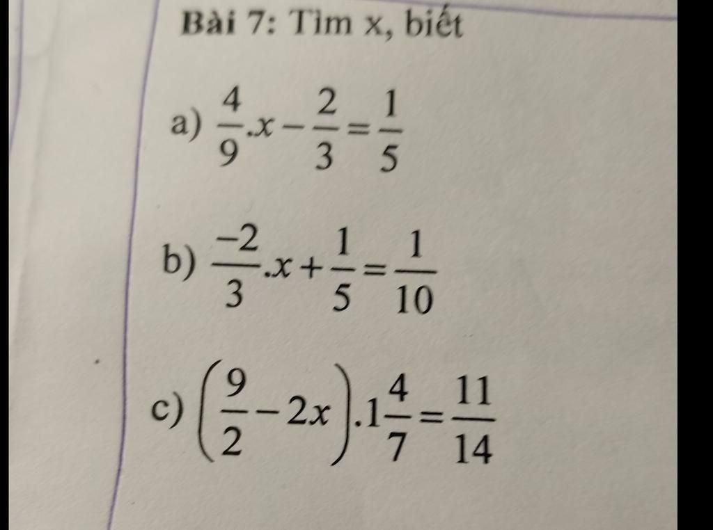 $\frac{4}{9}x -\frac{2}{3}= \frac{1}{5}$