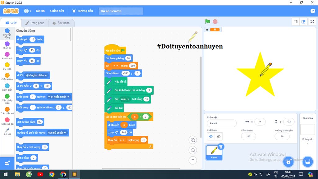Cách vẽ ngôi sao 5 cánh trong scratch