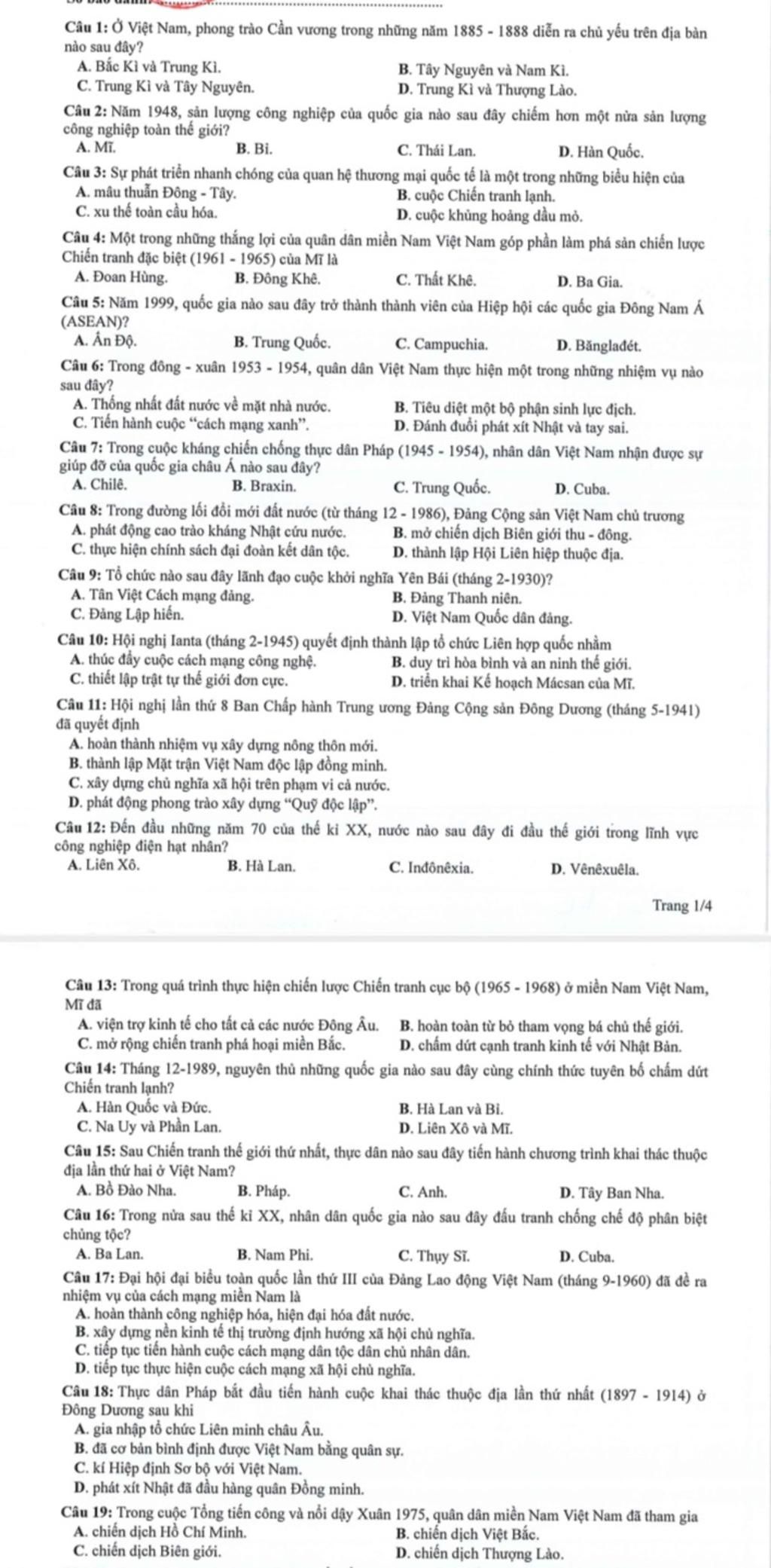 -> Trong cuộc kháng chiến chống thực dân Pháp (1945 - 1954), nhân dân Việt Nam nhận được sự giúp đỡ của quốc gia châu Á : Trung Quốc .