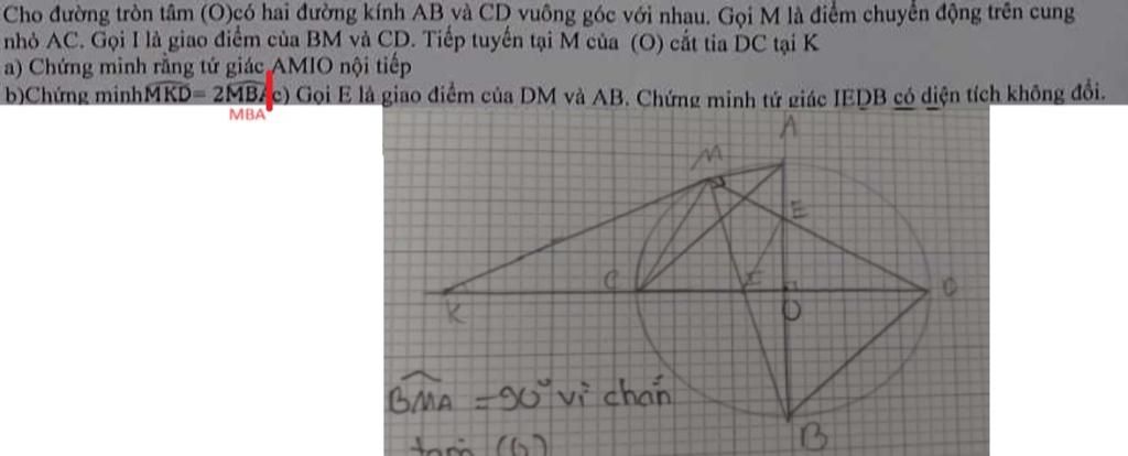 b)Chứng minhMKD = 2MB. c) Gọi E là giao điểm của DM và AB ...