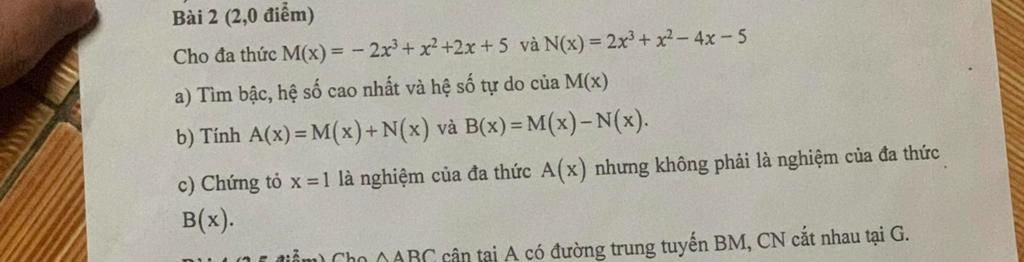 Cho đa thức M(x)= − 2x3 + x2 +2x+5 và N(x) = 2x3 + x2 - 4x - 5