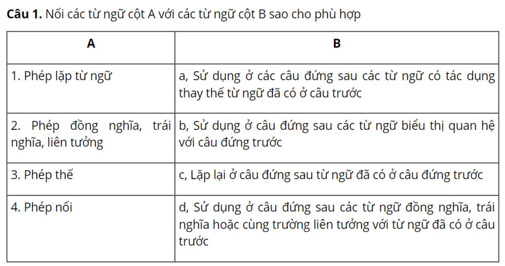 `-` Phép lặp từ ngữ: lặp lại ở câu đứng sau từ ngữ đã có ở câu đứng trước