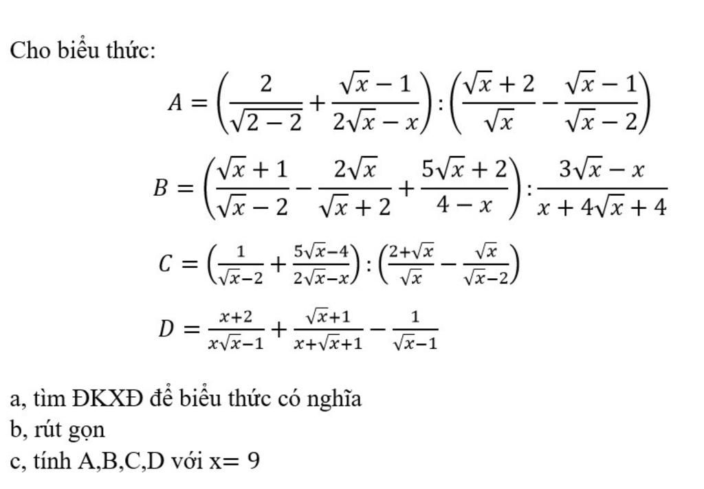 c, tính A,B,C,D với x= 9