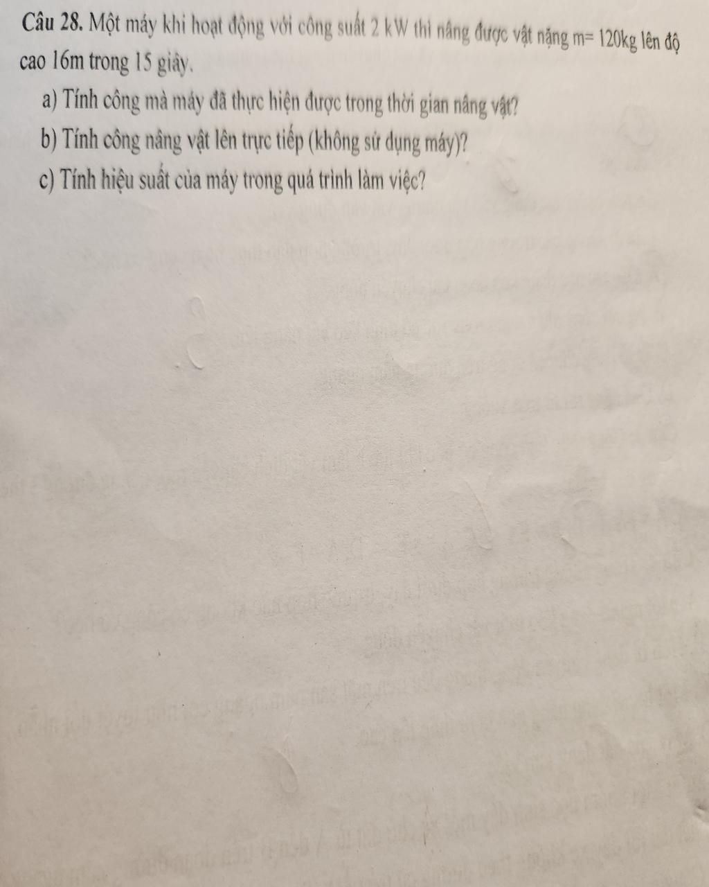 `a)` Công mà máy thực hiện trong thời gian nâng vật là: