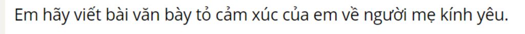 Người hùng trong lòng tôi, người đã chịu đau để xinh tôi ra, người có sức mạnh phi thường nhất, đó là mẹ . Tại sao tôi lại nói"người có sức mạnh phi thường nhất"?, vì chính người mẹ của chúng ta đã nhịn ăn để nhường cho chúng ta ăn, người đã làm việc mà không bao giờ than mệt. Người đời thường nói"siêu anh hùng có sức mạnh phi thường nhất", nhưng không đối với tôi mẹ tôi là một người rất lợi hại. người mẹ là người tuyệt nhất trong lòng tôi . Đó là lời nói với mẹ tôi"con yêu mẹ nhiều lắm"