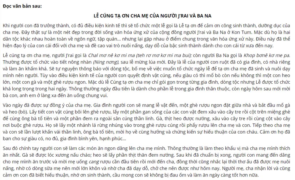 `+` Văn bản được kể theo trình tự thời gian `.` Bắt đầu là "khi con trưởng thành" `,` kể đến "lễ cúng tạ ơn" `,` "vào ngày nhận được sự đồng ý của cha mẹ" `,` "sau đó" `,...` Sắp xếp văn bản kể theo trình tự thời gian `.`