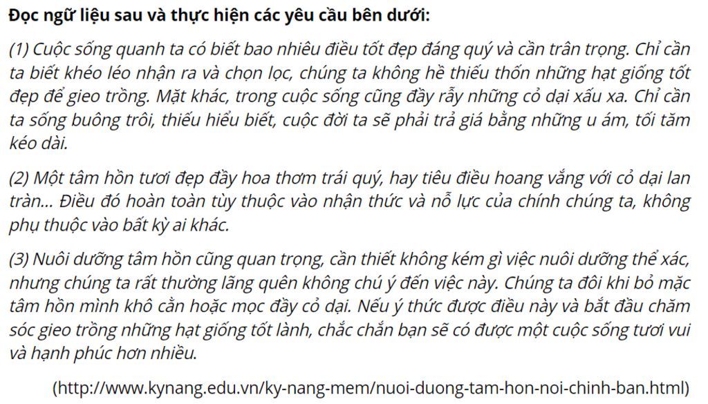 `-` Để có một tâm hồn đẹp `,` em sẽ: