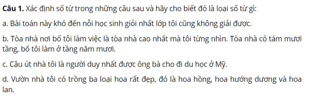 `b`. Tòa nhà nơi bố tôi làm việc là tòa nhà cao nhất mà tôi từng nhìn. Tòa nhà có tám mươi tầng, bố tôi làm ở tầng năm mươi