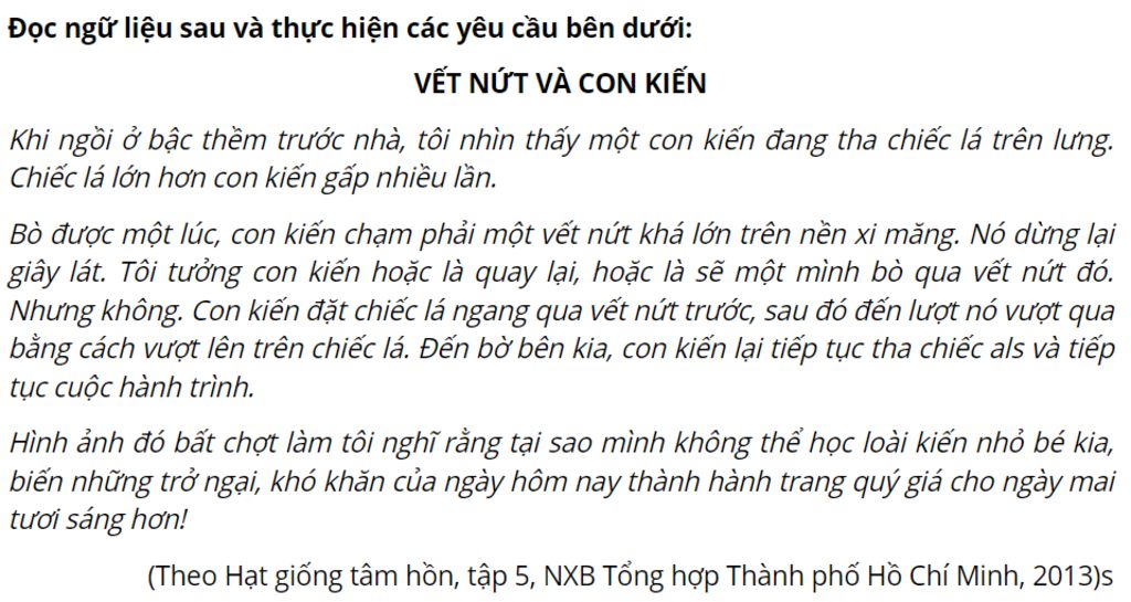 `=>` Chiếc lá vô cùng hữu dụng khi đã giúp kiến bò qua vết nứt trên nền xi măng.