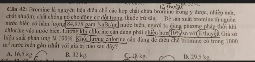 `->`$1000(m^3)$ có $84.975 \times 1000= 84975(gam)$ $NaBr$