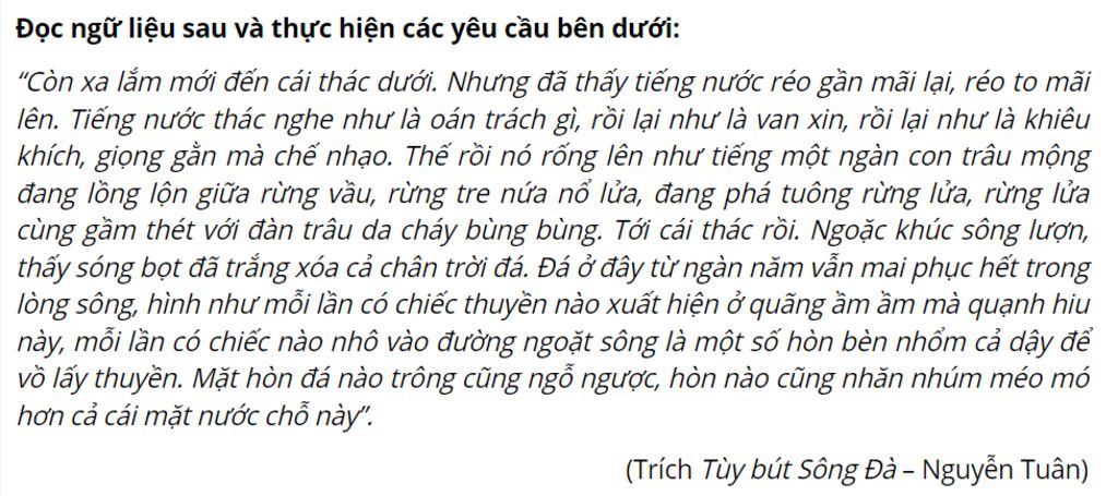 `-> C.` Đá ở đây từ ngàn năm vẫn mai phục hết trong lòng sông, hình như mỗi lần có chiếc thuyền nào xuất hiện ở quãng ầm ầm mà quạnh hiu này, mỗi lần có chiếc nào nhô vào đường ngoặt sông là một số hòn bèn nhổm cả dậy để vồ lấy thuyền