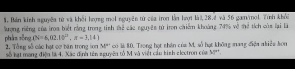 Cho 1 mol Fe: