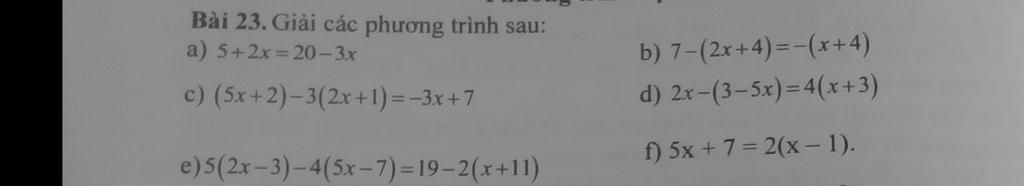 `a) 5+2x = 20-3x`
