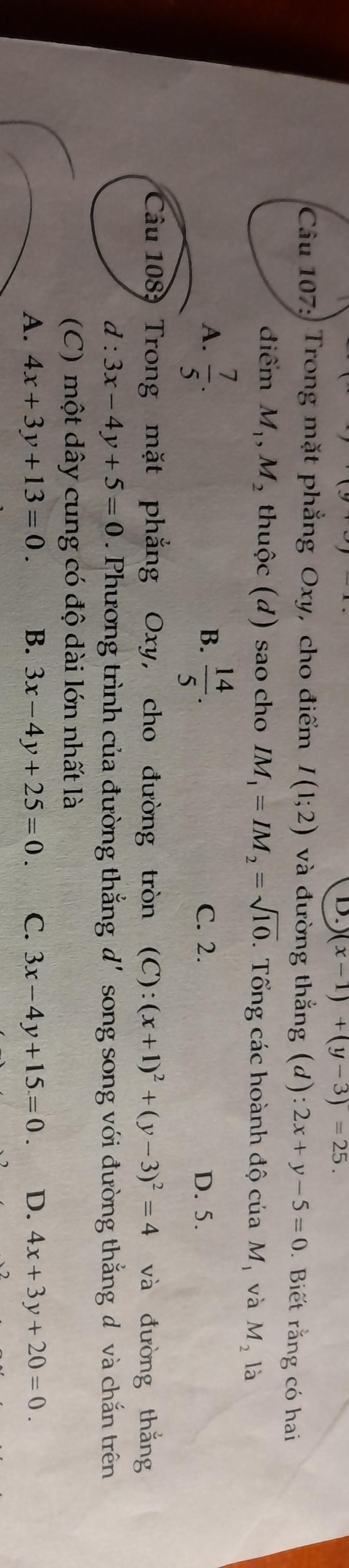 giả sử điểm M bất kì trên đường thẳng với x=m => M(m;5-2m)