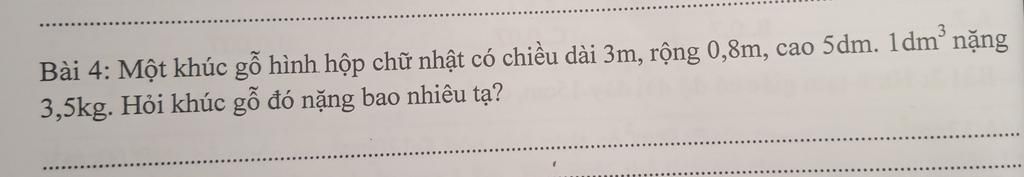 Thể tích của khuc gỗ hình hộp chữ nhật đó là: