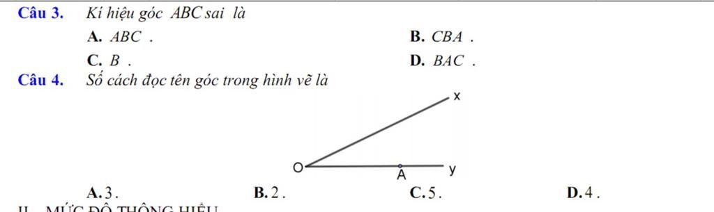 Các cách đọc tên góc trong hình là `:` `hat(xOy) ; hat(xOA)`