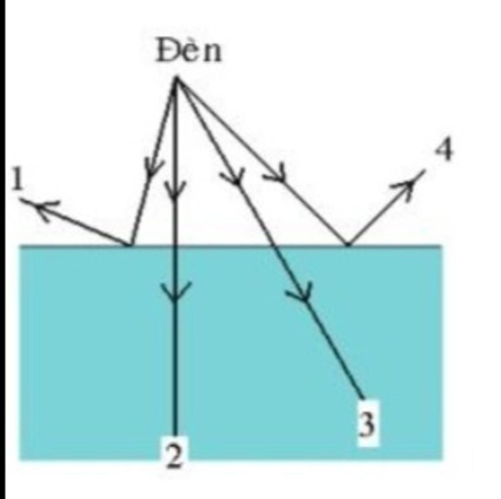 Tia 1,4 chỉ dựa vào sự phản xạ ánh sáng chưa nói lên hiện tượng khúc xạ `=>` tia 1,4 sai