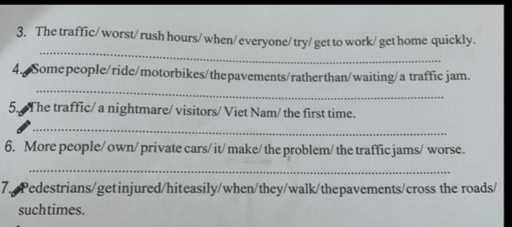 6. More people/own/private cars/it/make/the problem/the traffi ...