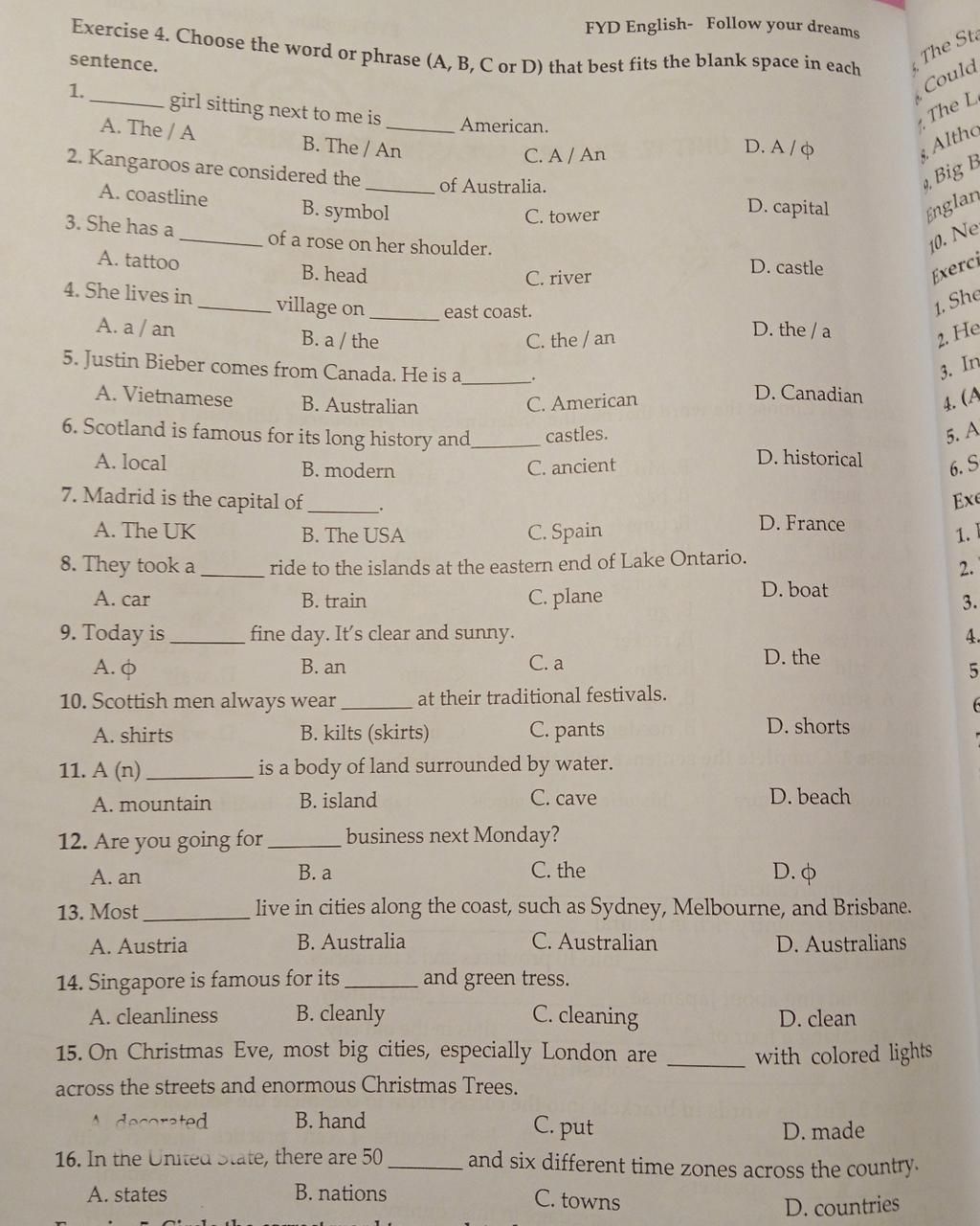 Exercise 4. Choose the word or phrase (A, B, C or D) that best fits the blanks