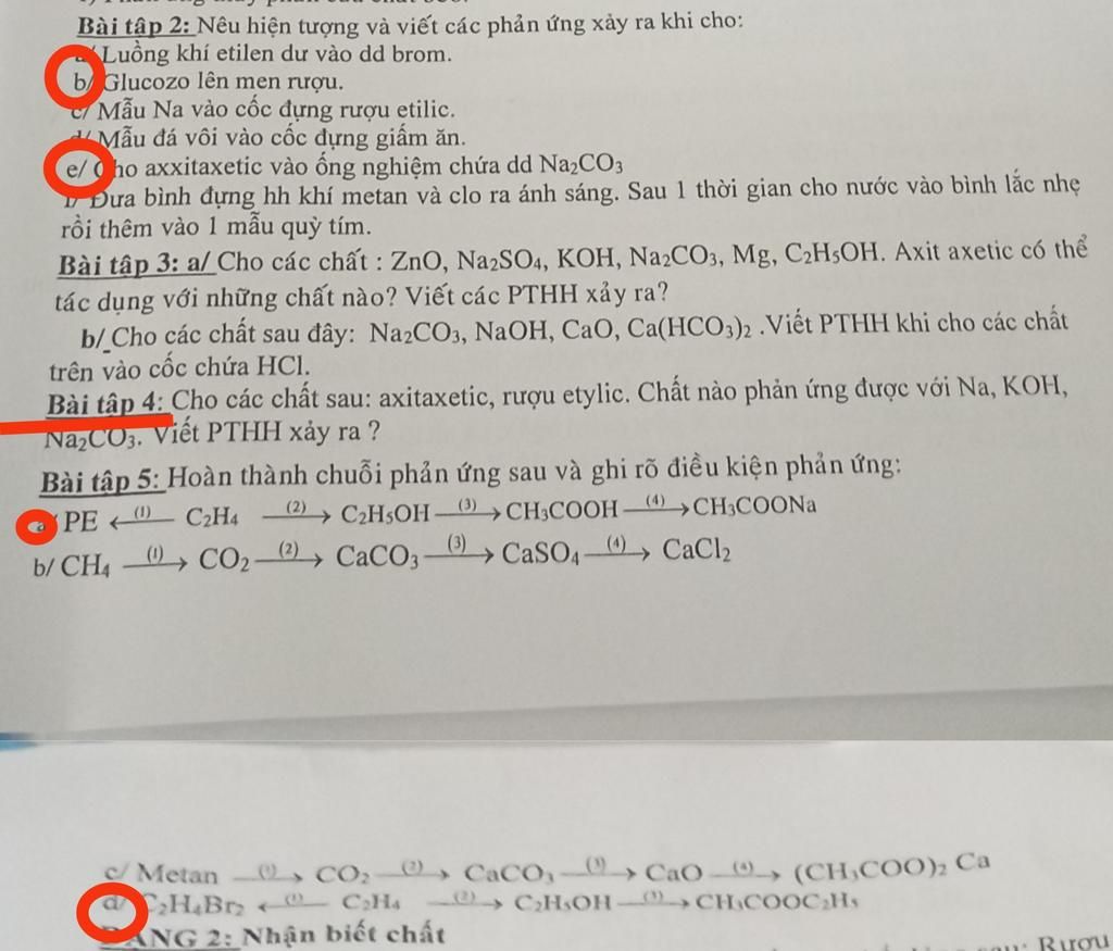 `e) 2CH_3COOH + Na_2CO_3 \to 2CH_3COONa + CO_2 + H_2O`