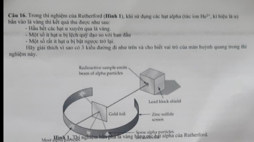 Màn huỳnh quang có tác dụng quan sát quỹ đạo di chuyển của các hạt $\alpha$. Khi có hạt $\alpha$ xuyên qua lá vàng và đập vào màn huỳnh quang thì màn sẽ phát sáng, từ đó xác định được hạt $\alpha$ đã di chuyển thẳng hay lệch.