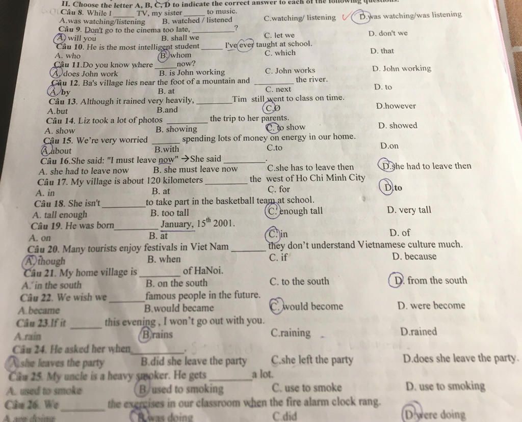 II. Choose the letter A, B, C, D to indicate the correct answer to each of the fo