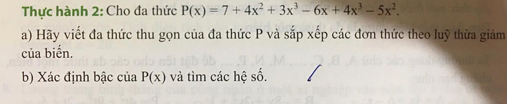 `a)` `P(x) = 7 + 4x^2 + 3x^3 - 6x + 4x^3 - 5x^2`