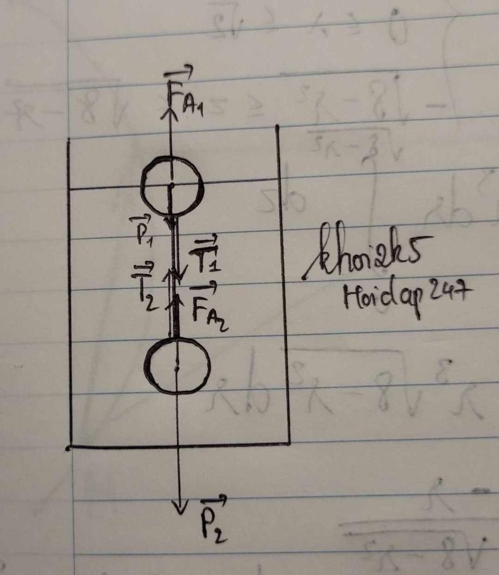 Xét quả cầu ở dưới chịu tác dụng của các lực cân bằng: