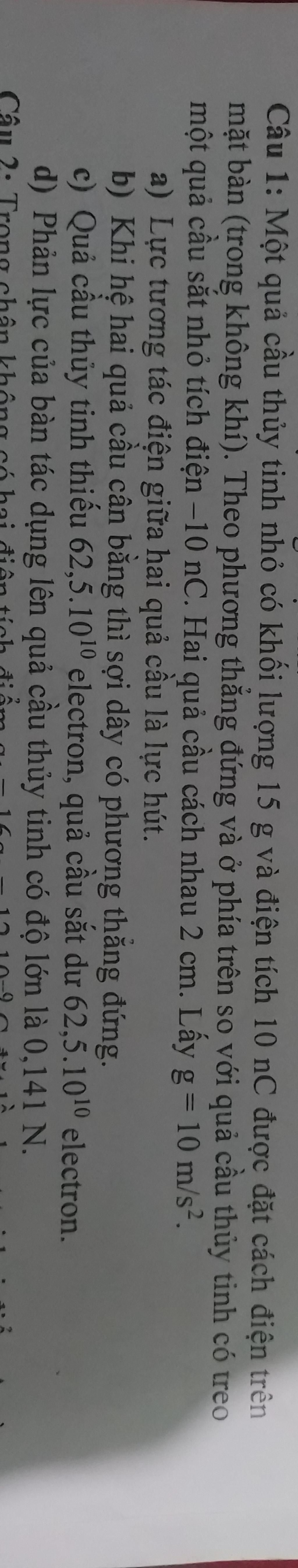 Quả cầu thủy tinh mang điện tích dương nên nó bị thiếu số electron là: