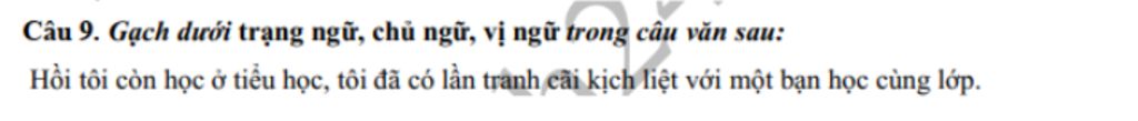 `->` Trạng ngữ chỉ thời gian "Hồi tôi còn học ở tiểu học"