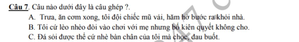 Câu nào dưới đây là câu ghép ?.
