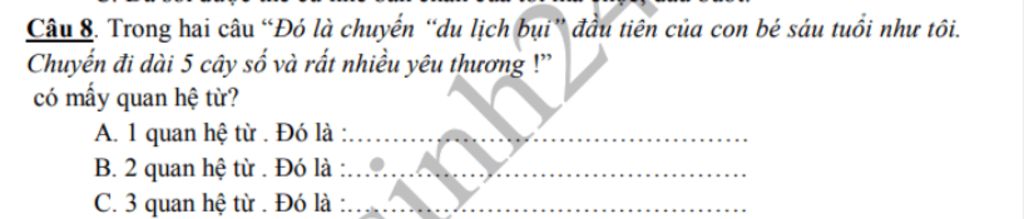 `=>` `C.` `3` quan hệ từ . Đó là : Của , như , và