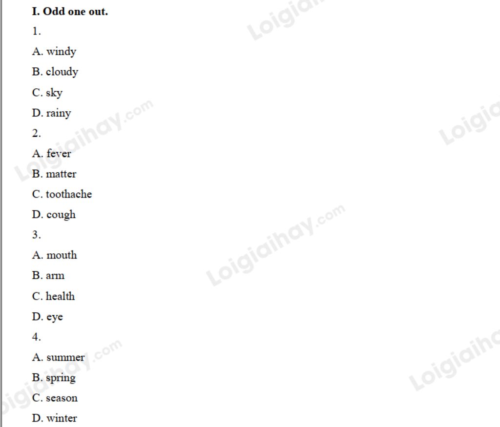 `4` C (Có nghĩa là "mùa", còn lại là danh từ chỉ từng mùa)