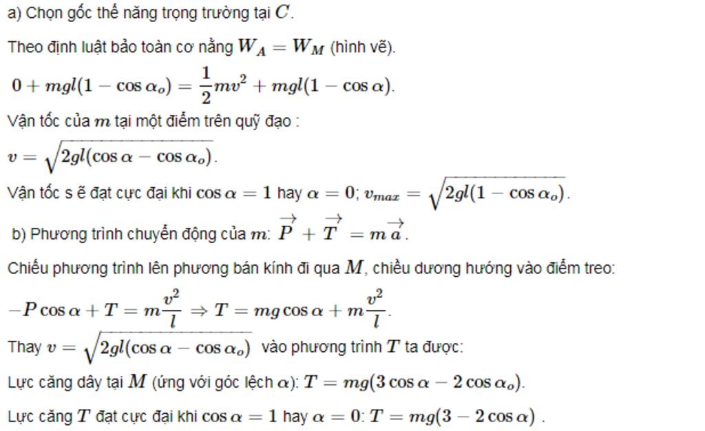 b. Tính lực căng của sợi dây khi dây treo hợp với phương thẳng đứng 1 góc a và ở vị trí cân bằng ?