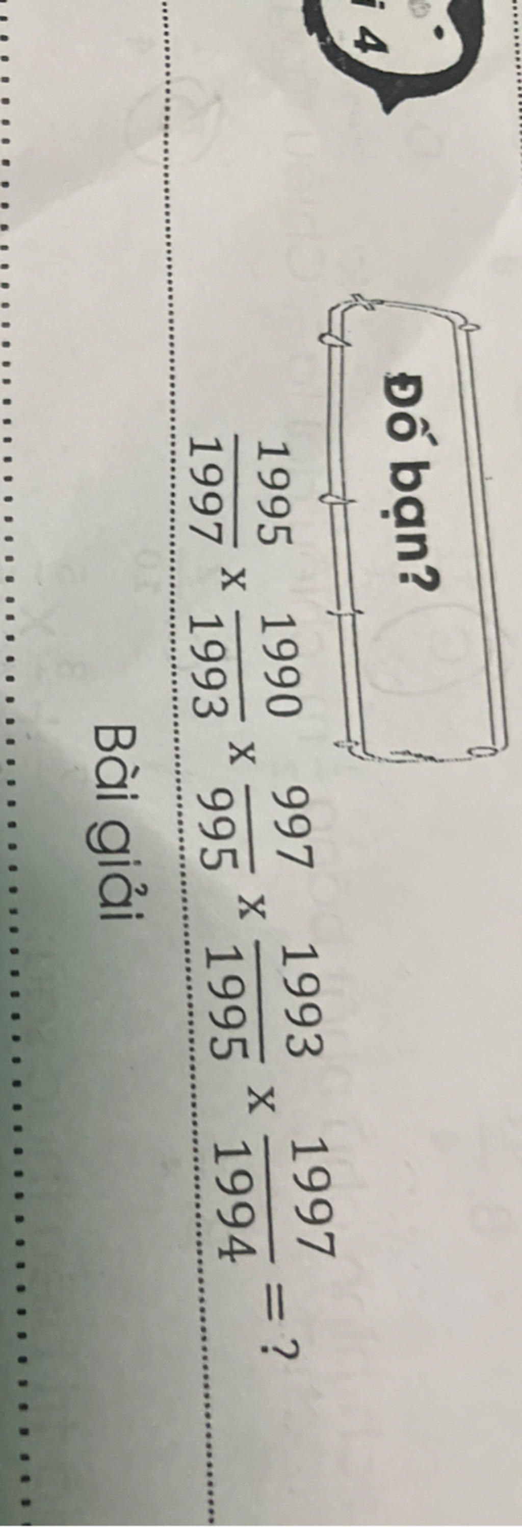 $\frac{1995}{1997}$ x $\frac{1990}{1993}$ x $\frac{997}{995}$ x $\frac{1993}{1995}$ x $\frac{1997}{1994}$