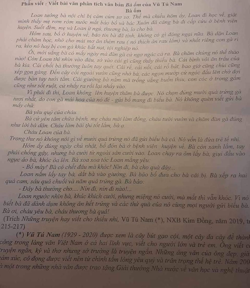 Phân tích truyện ngắn bà ốm của vũ tú nam dùm mình với ạ mình đang cần