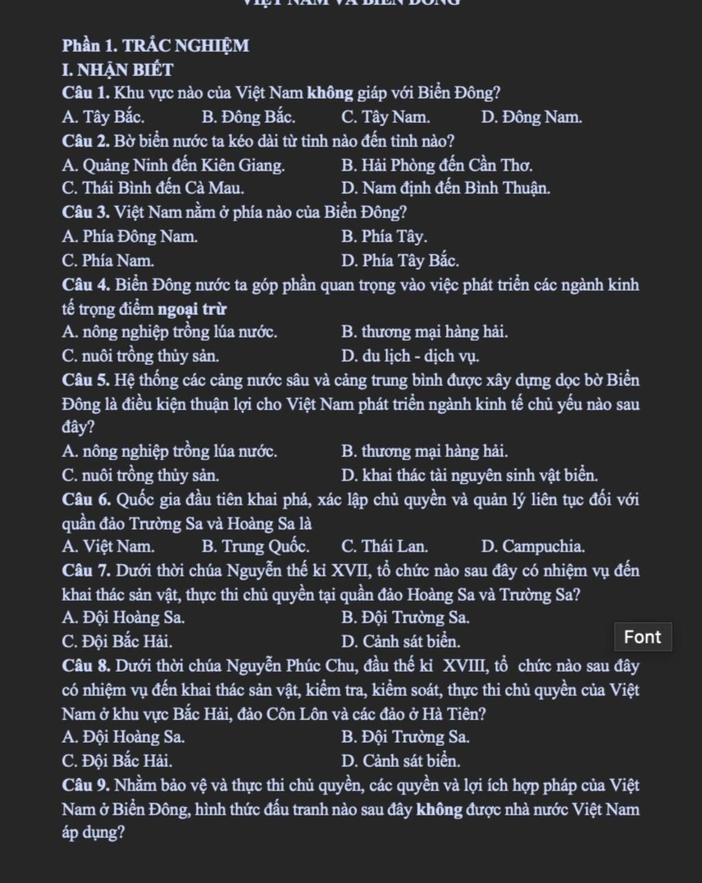 Câu 3 A Nước ta giáp với biển Đông ở hướng Đông Nam