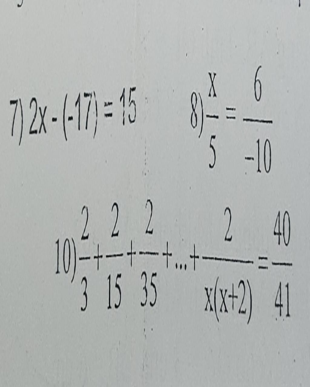 `2/3+2/15+2/35+...+2/( x(x+2) )=40/41`